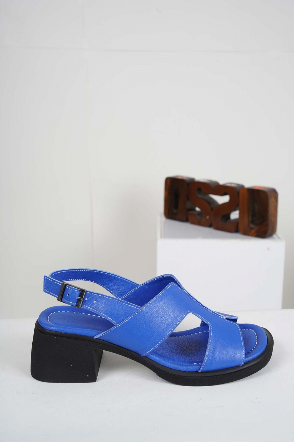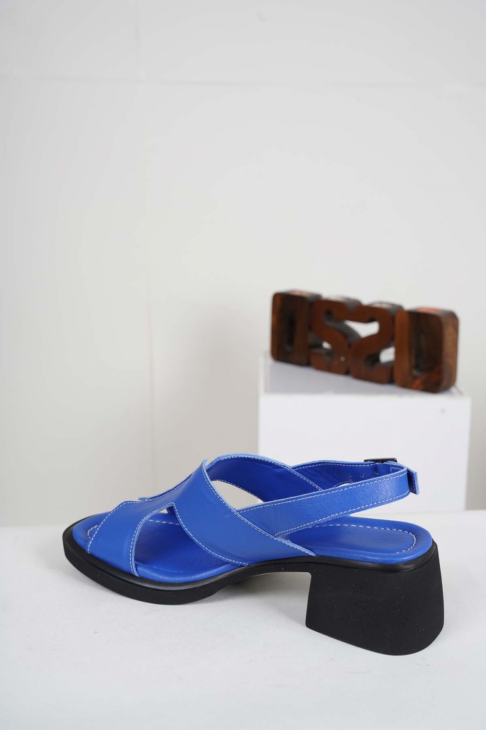 Hakiki Deri Sax Mavi Kadın Topuklu Sandalet 241225504