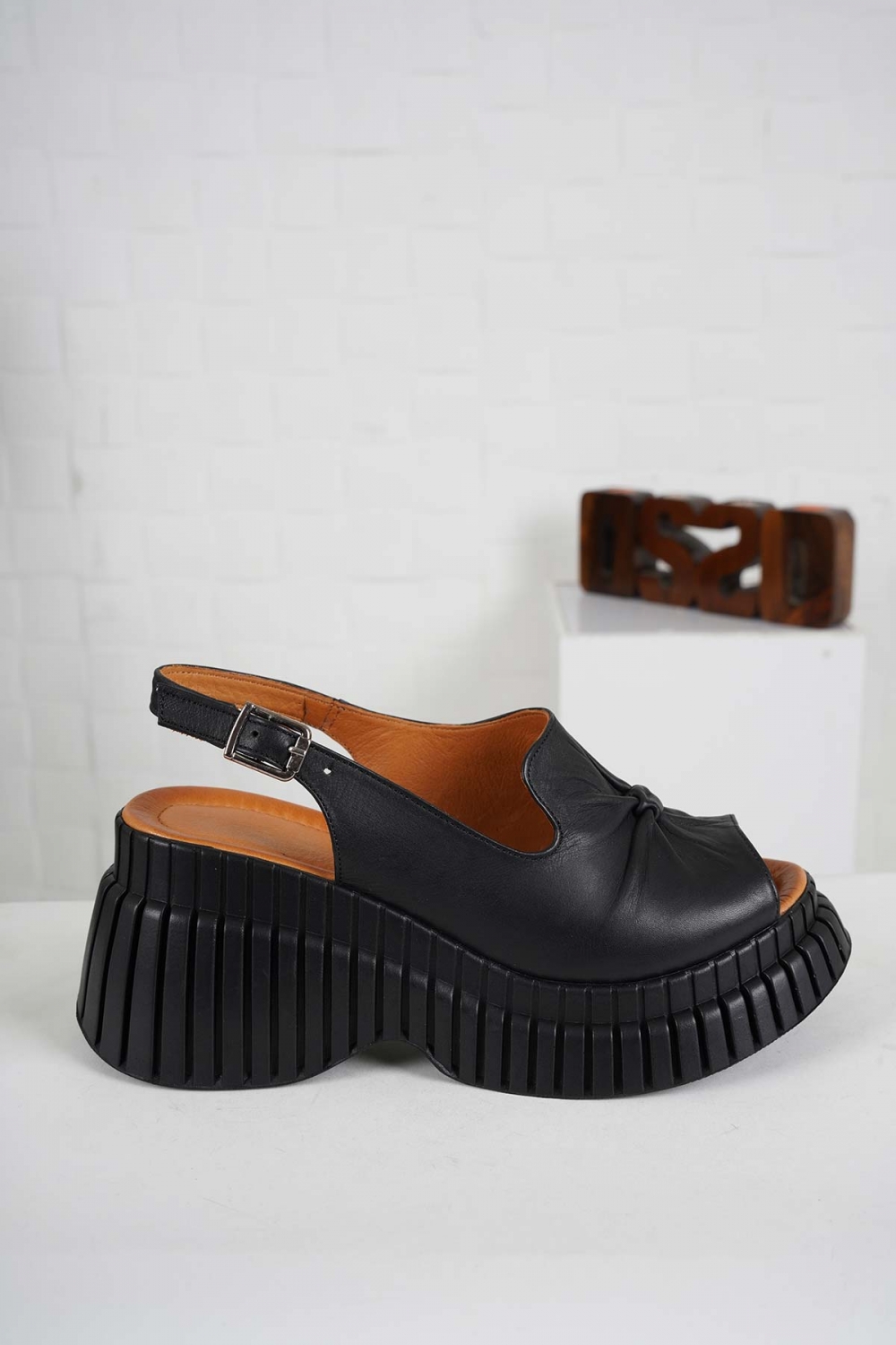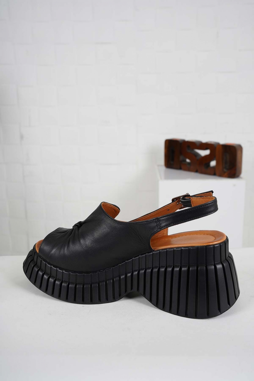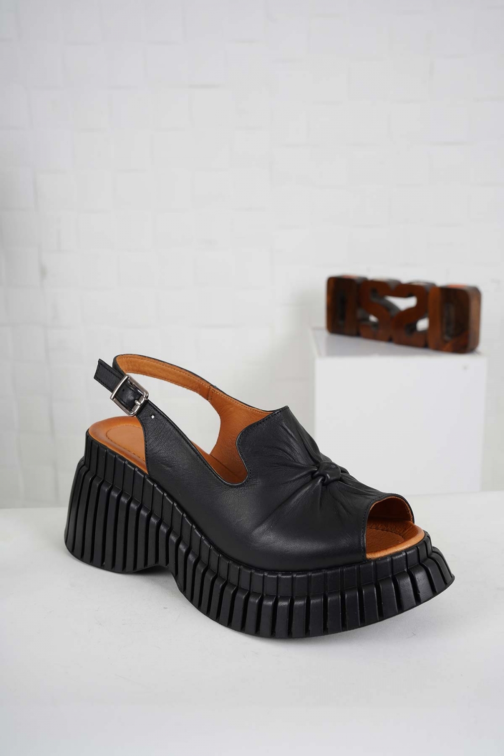 Hakiki Deri Siyah Kadın Dolgu Topuk Sandalet 241229511
