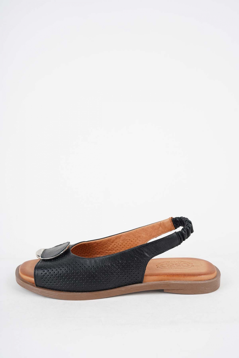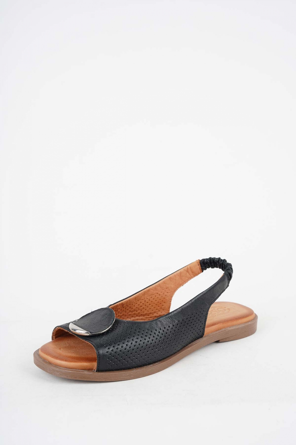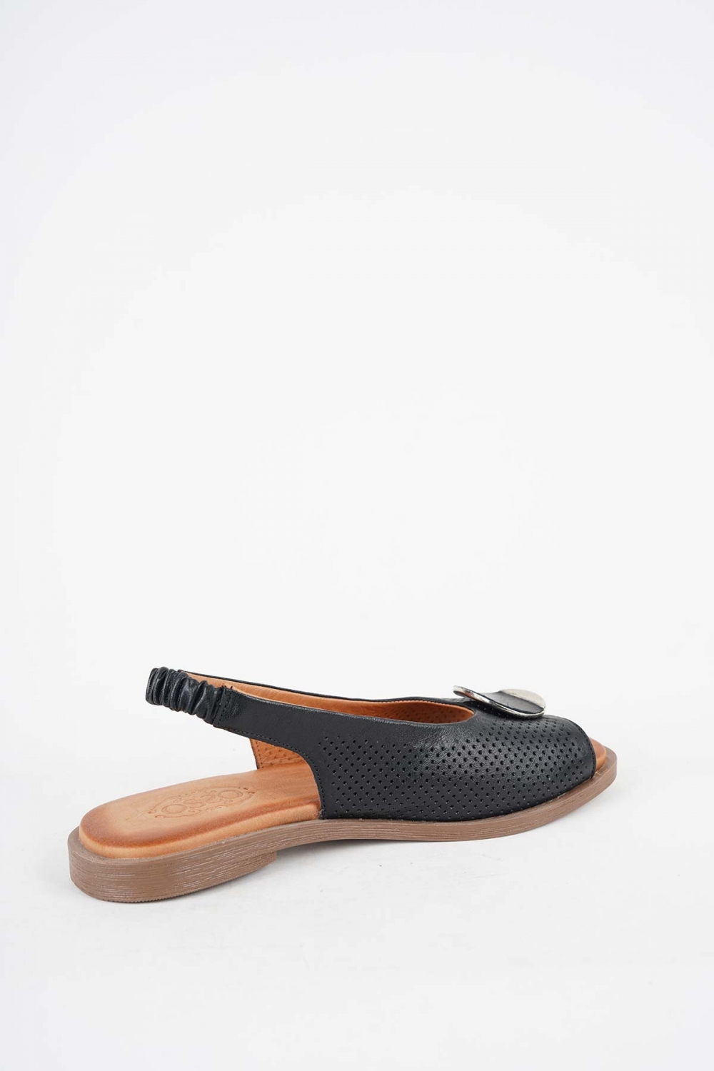 Hakiki Deri Taba-Siyah Kadın Düz Sandalet 261141504