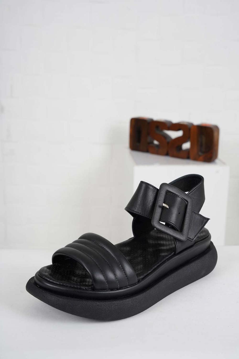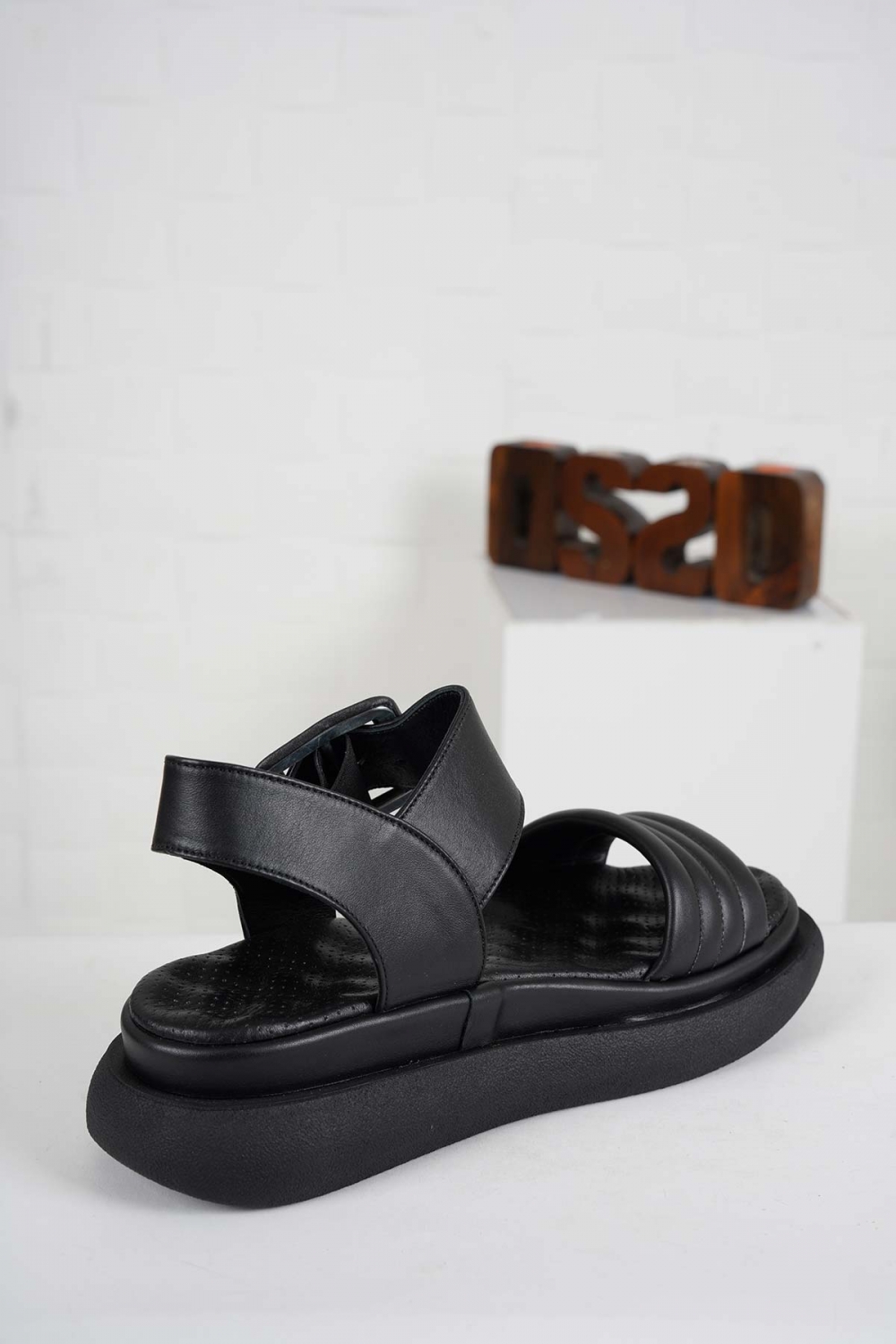 Hakiki Deri Siyah Kadın Düz Sandalet 261141502
