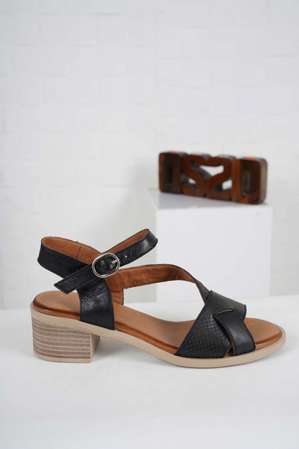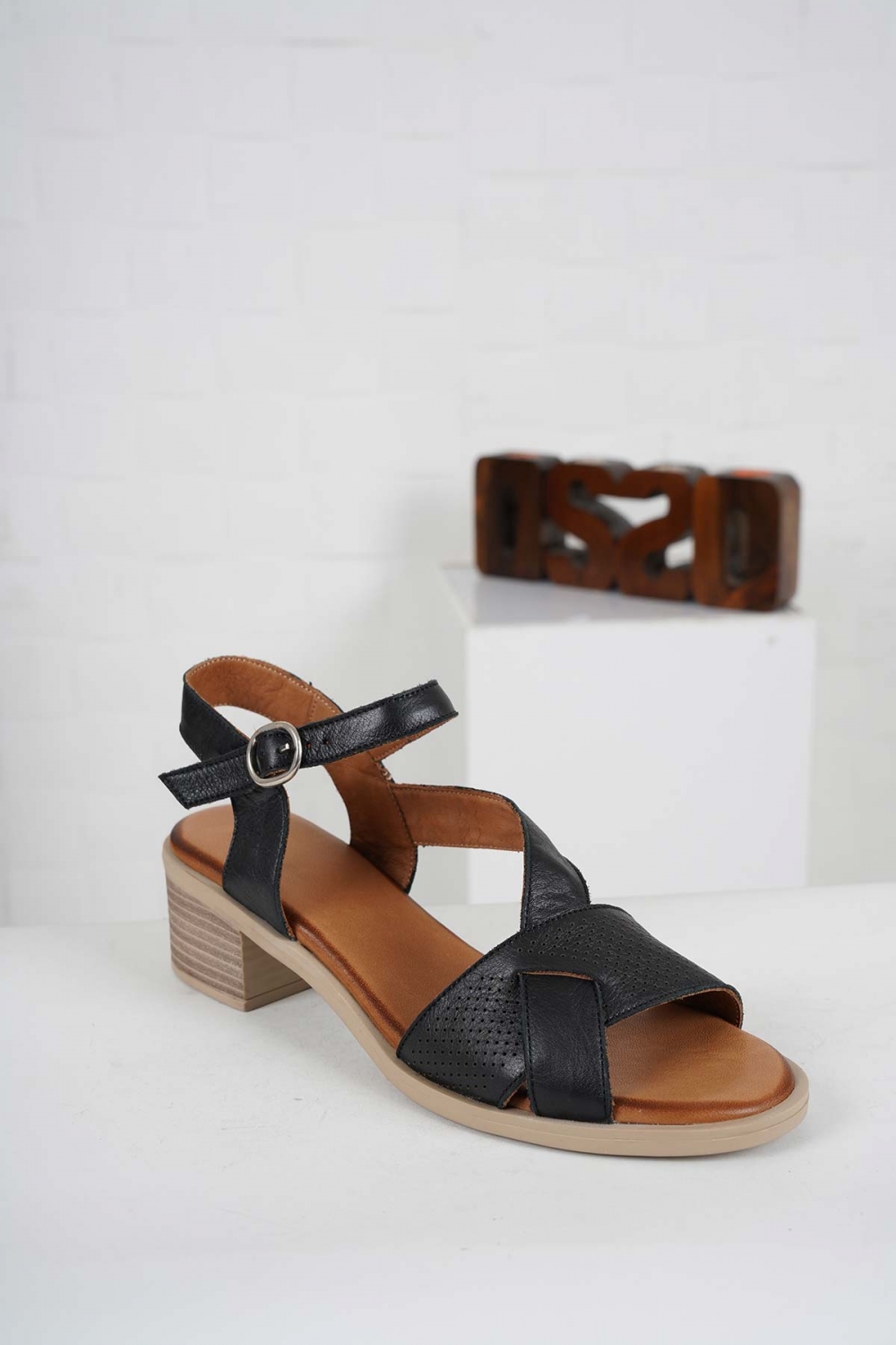 Hakiki Deri Siyah Kadın Topuklu Sandalet 241126503