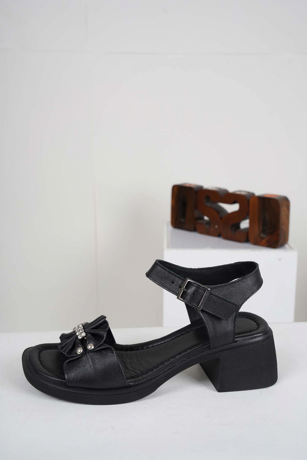 Hakiki Deri Siyah Kadın Topuklu Sandalet 241225505