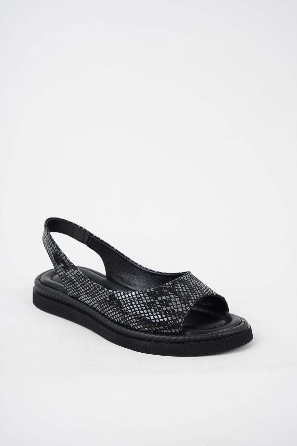 Hakiki Deri Siyah Yılan Kadın Düz Sandalet 251173511