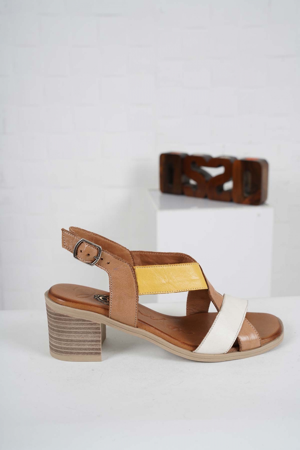 Hakiki Deri Taba-Bej-Sarı Kadın Topuklu Sandalet 241126509