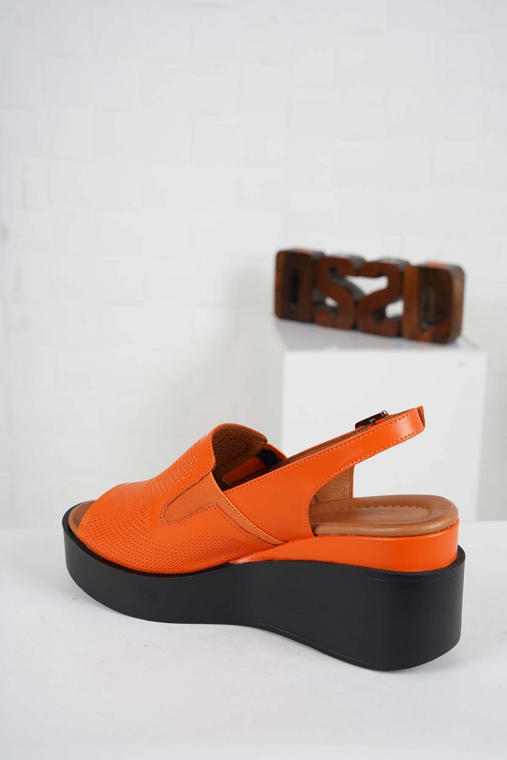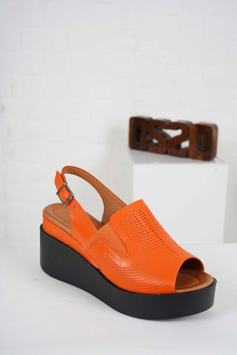 Hakiki Deri Turuncu Kadın Dolgu Topuk Sandalet 241229501