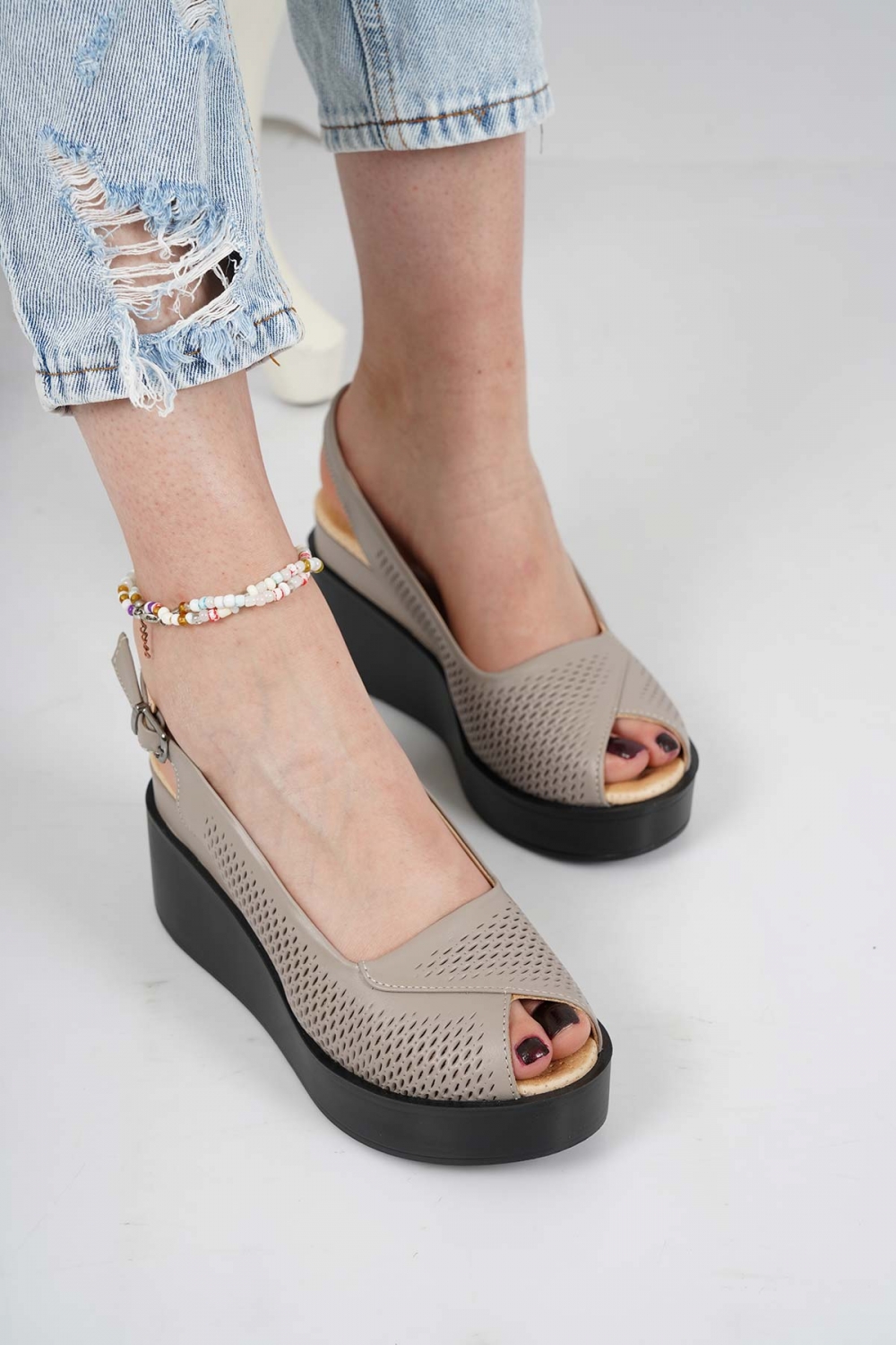 Hakiki Deri Vizon Kadın Dolgu Topuk Sandalet 231229510