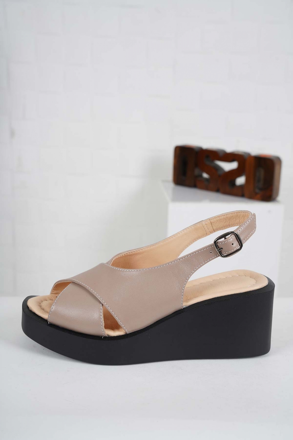 Hakiki Deri Vizon Kadın Dolgu Topuk Sandalet 241189501