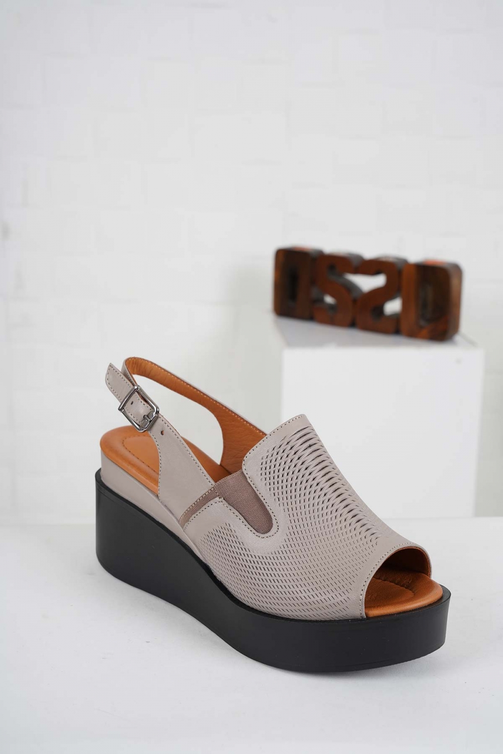 Hakiki Deri Vizon Kadın Dolgu Topuk Sandalet 241229501