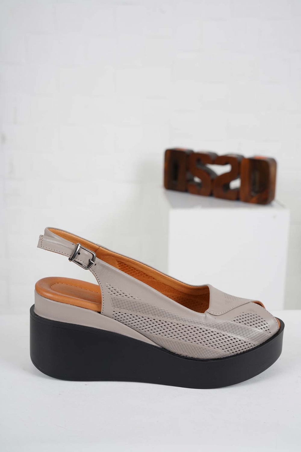 Hakiki Deri Titanyum Kadın Burun Kapalı Sandalet 261141507