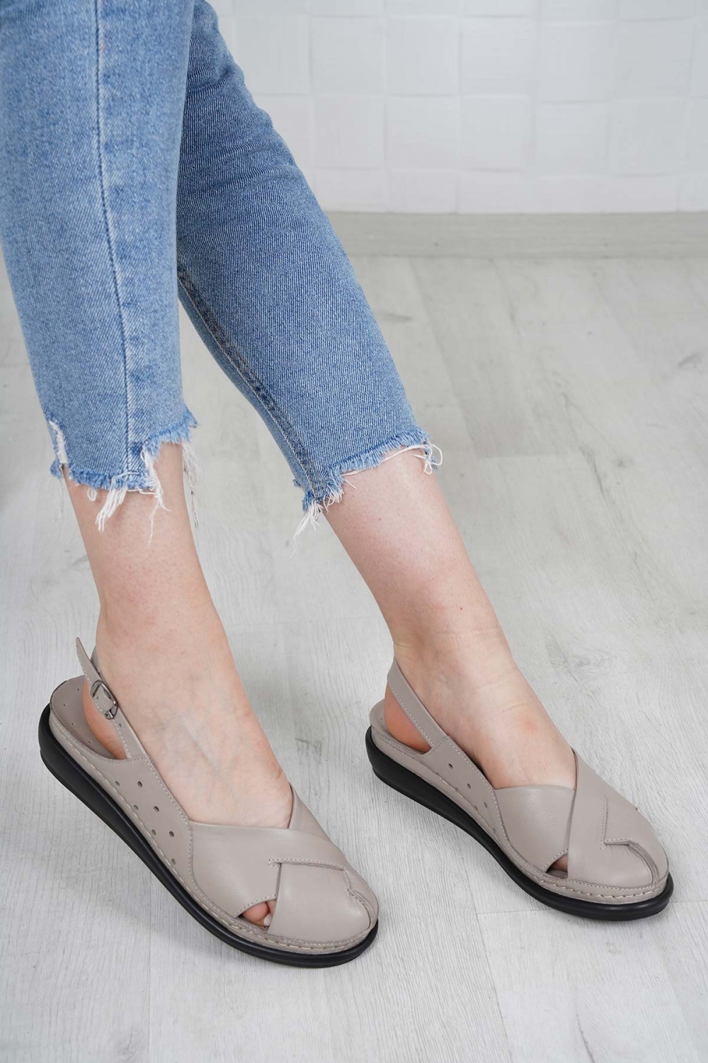 Hakiki Deri Vizon Kadın Komfort Sandalet 231177505
