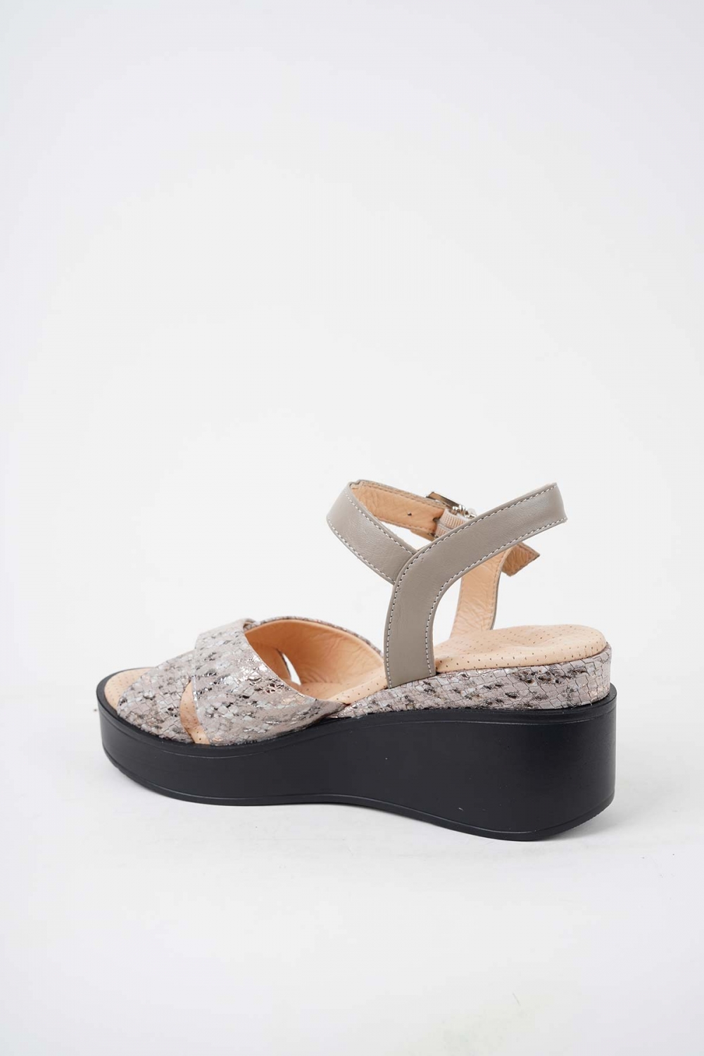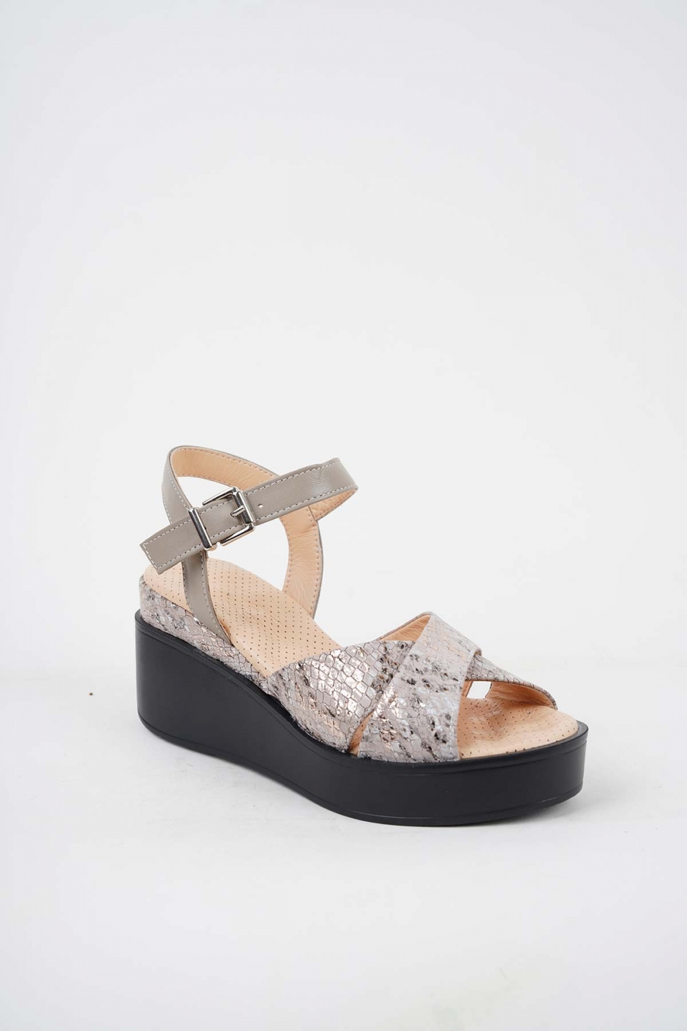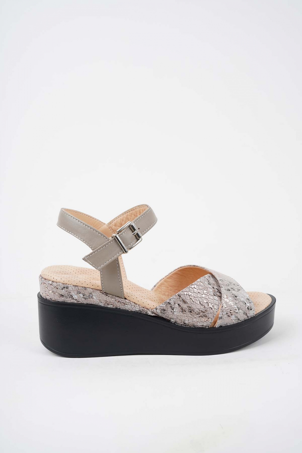 Hakiki Deri Vizon-Yılan Baskılı Kadın Dolgu Topuk Sandalet 251136504