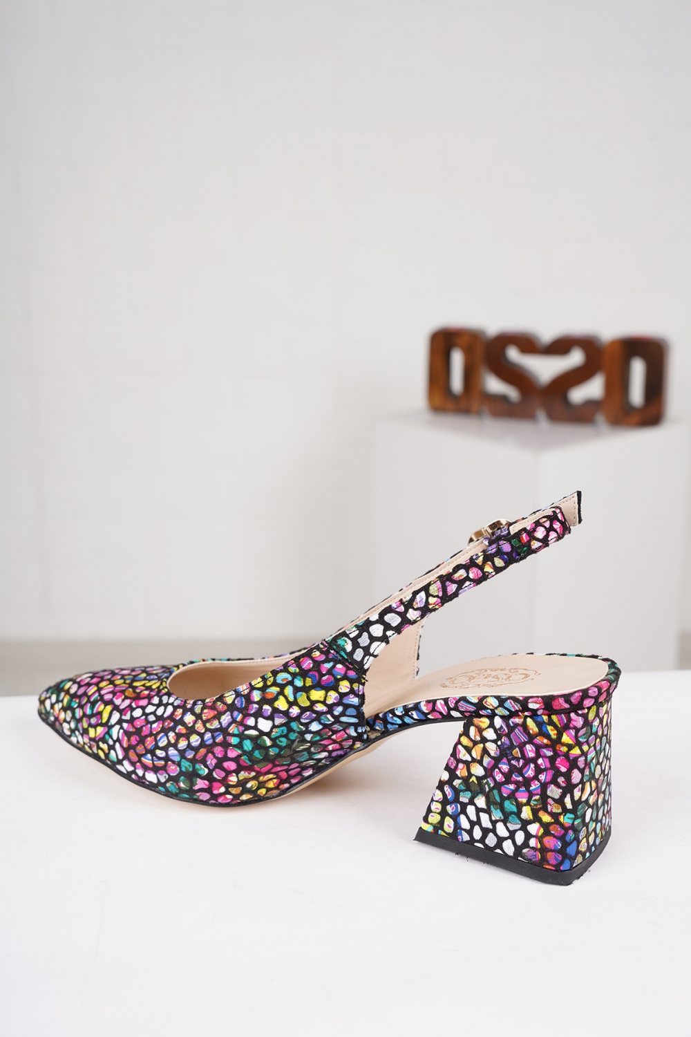 Siyah-Beyaz Çiçekli Kadın Topuklu Sandalet 221127528