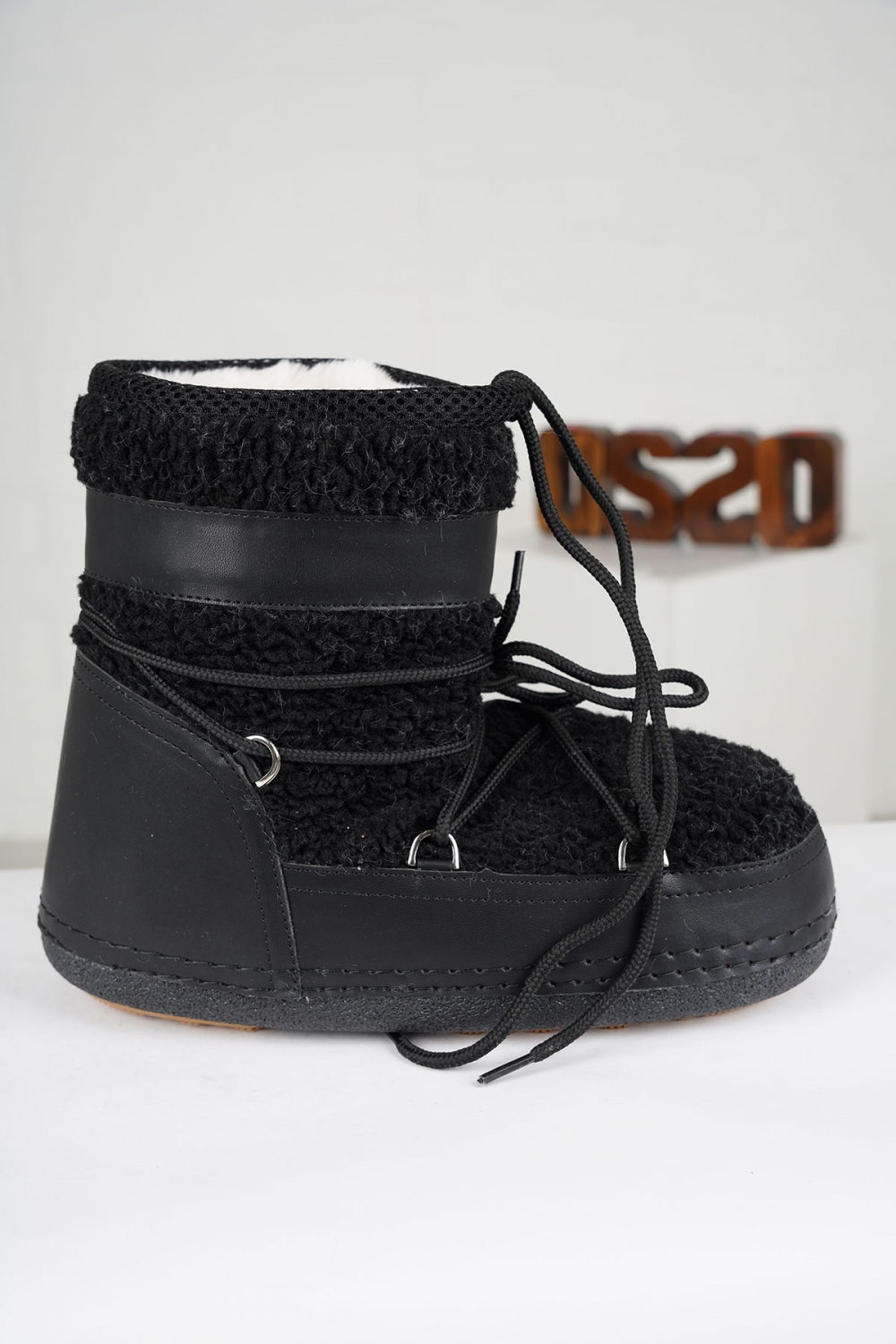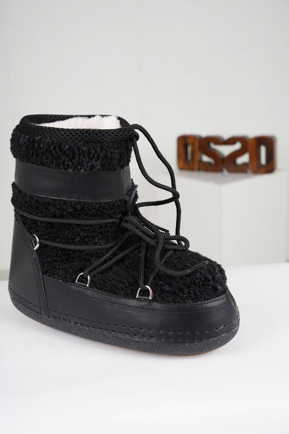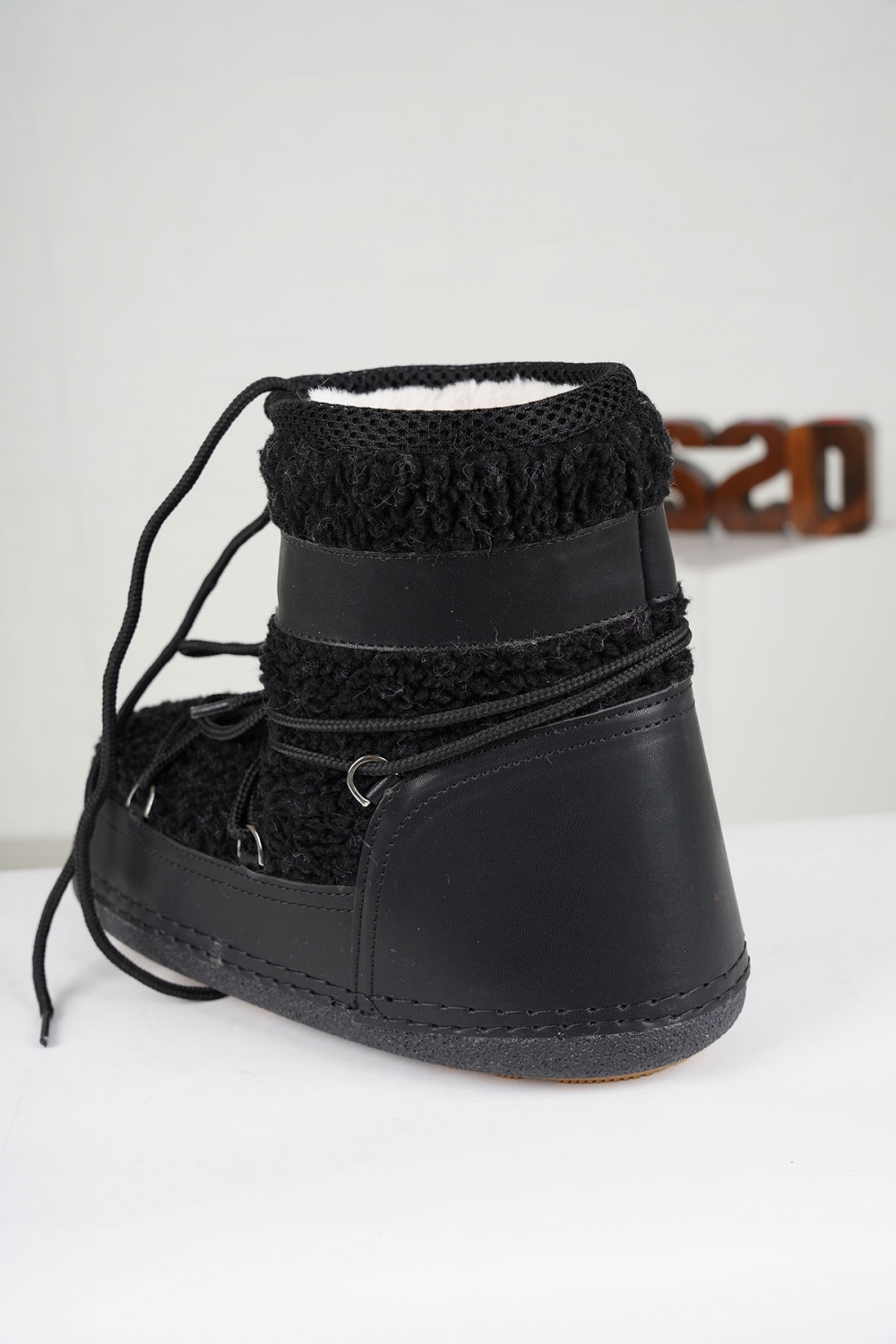 Hakiki Deri Kürklü Siyah Kadın Casual Bot 252136211