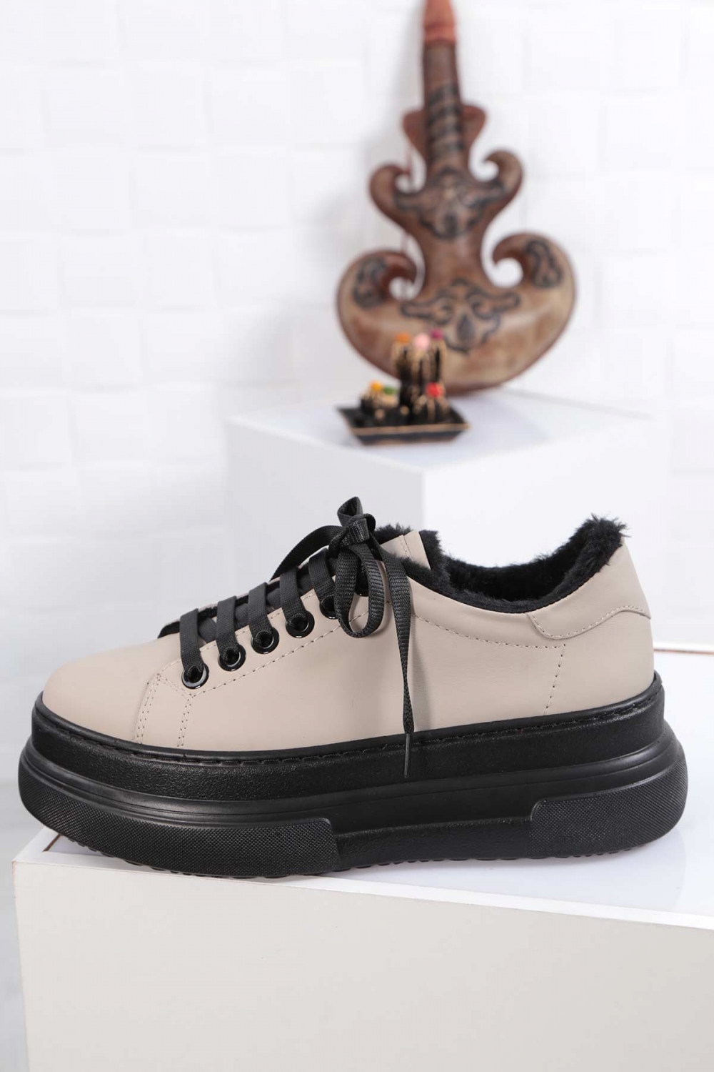 Hakiki Deri Bej Kadın Sneaker Ayakkabı 212225103