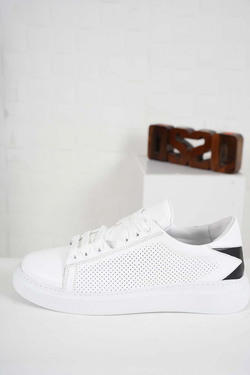 Hakiki Deri Beyaz-Siyah Kadın Sneaker Ayakkabı 241218101