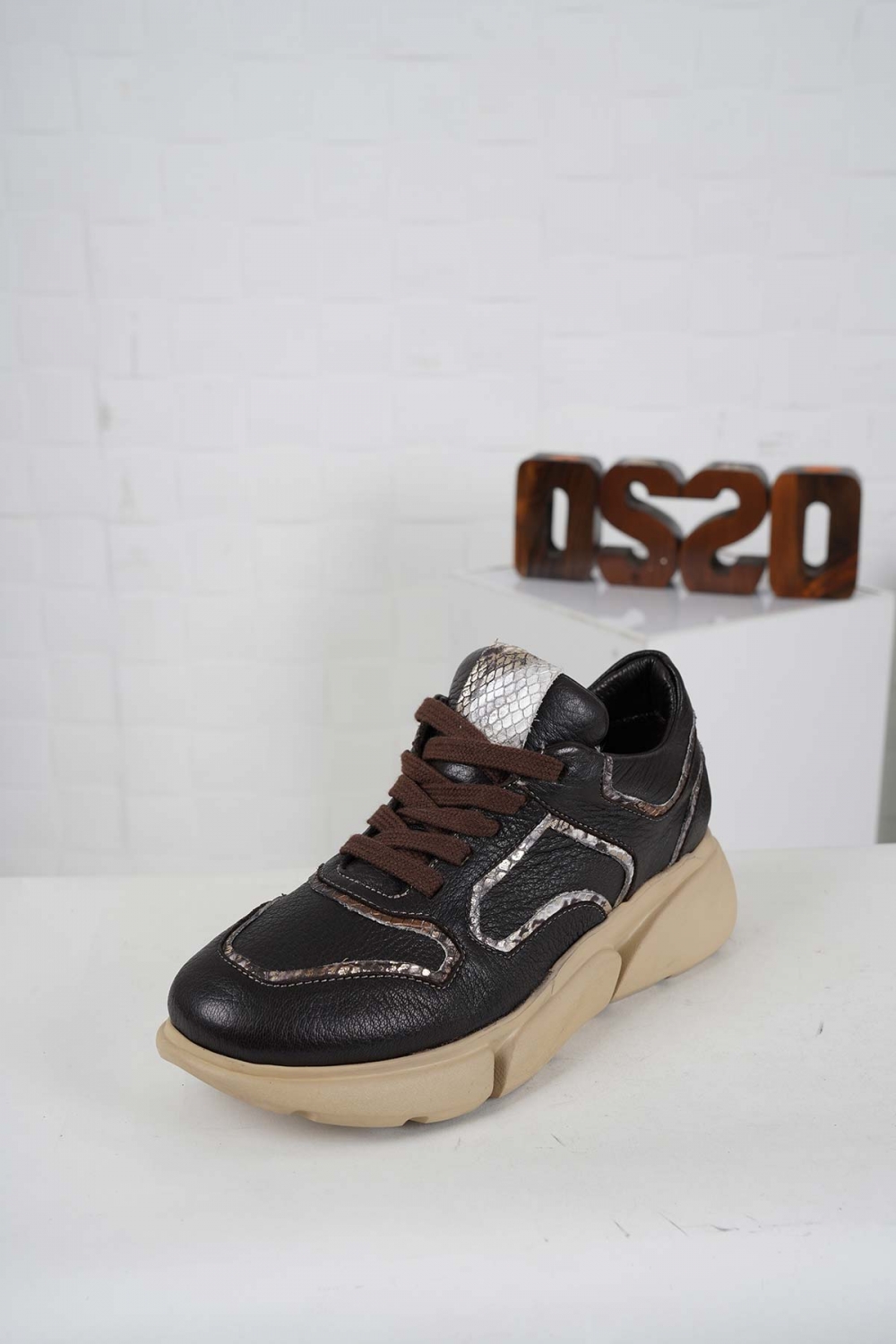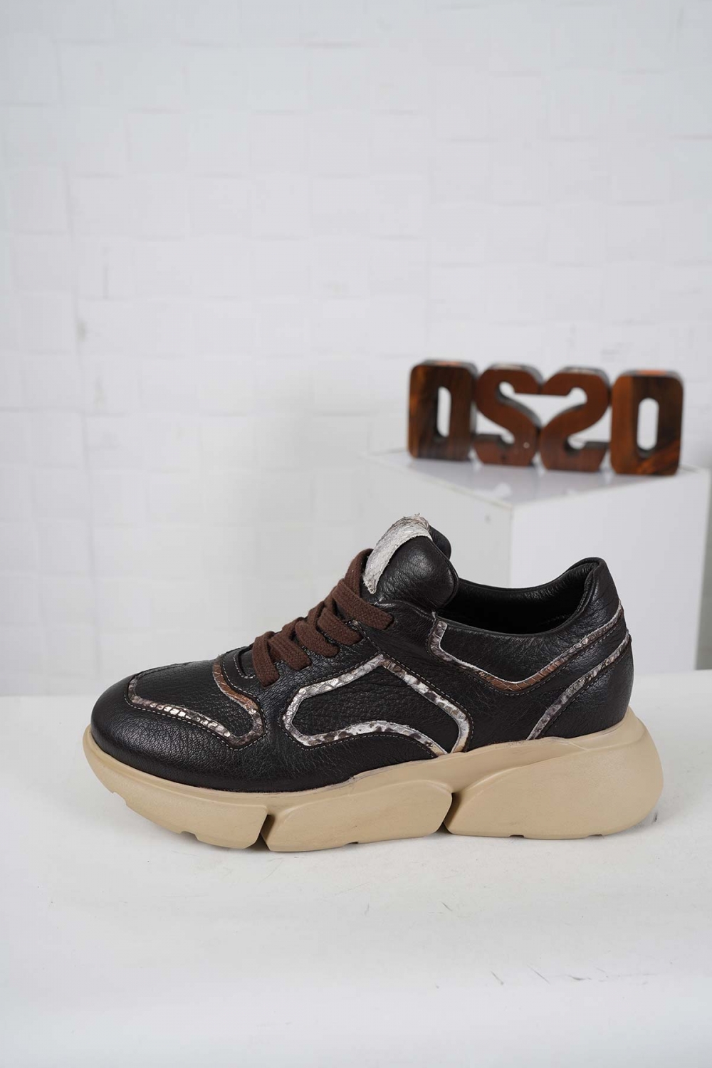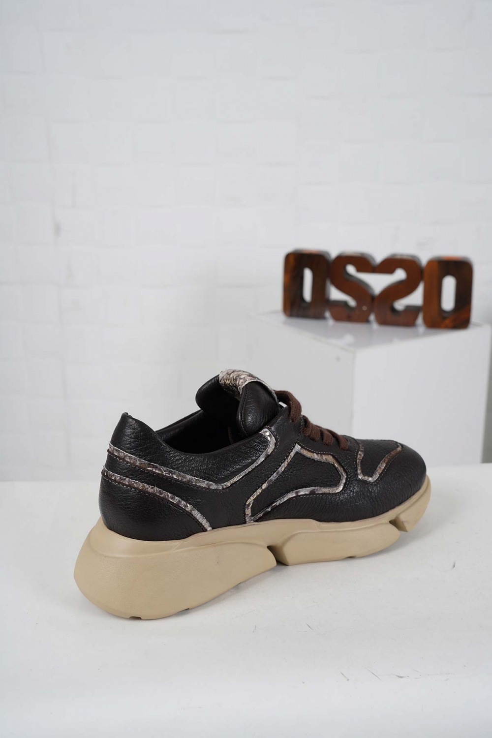 Hakiki Deri Kahve Flt.-Yılan Kadın Sneaker Ayakkabı 242114101