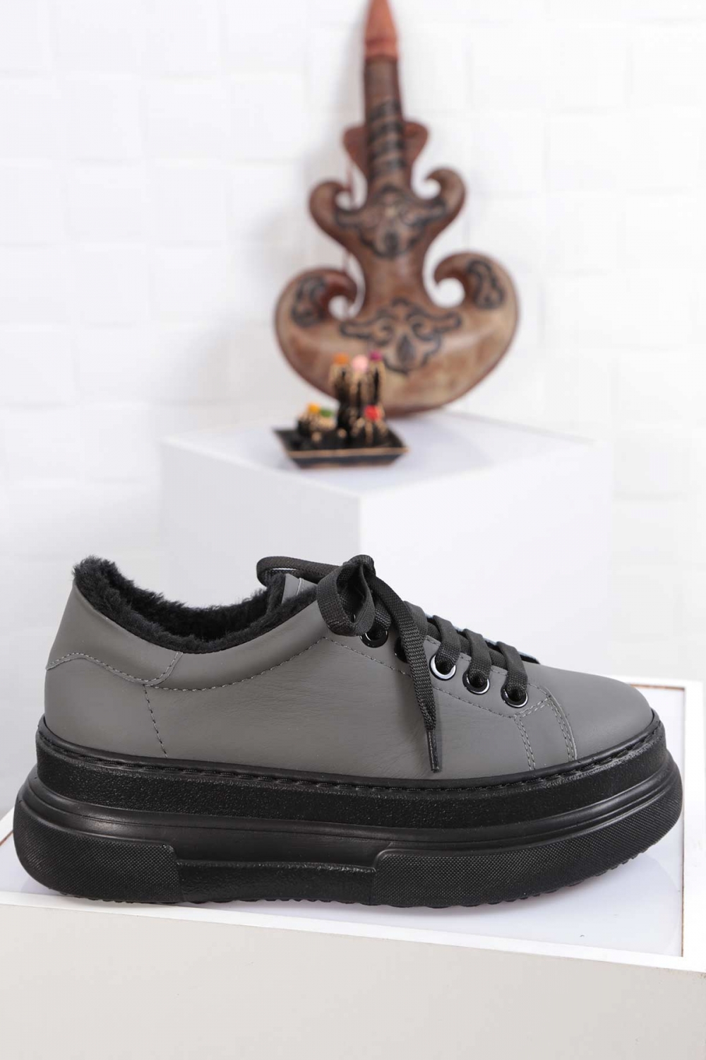 Hakiki Deri Mat Füme Kadın Sneaker Ayakkabı 212225103