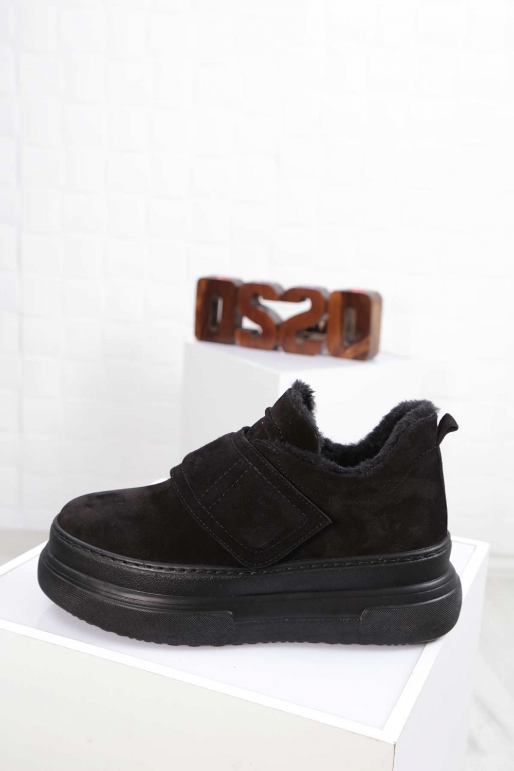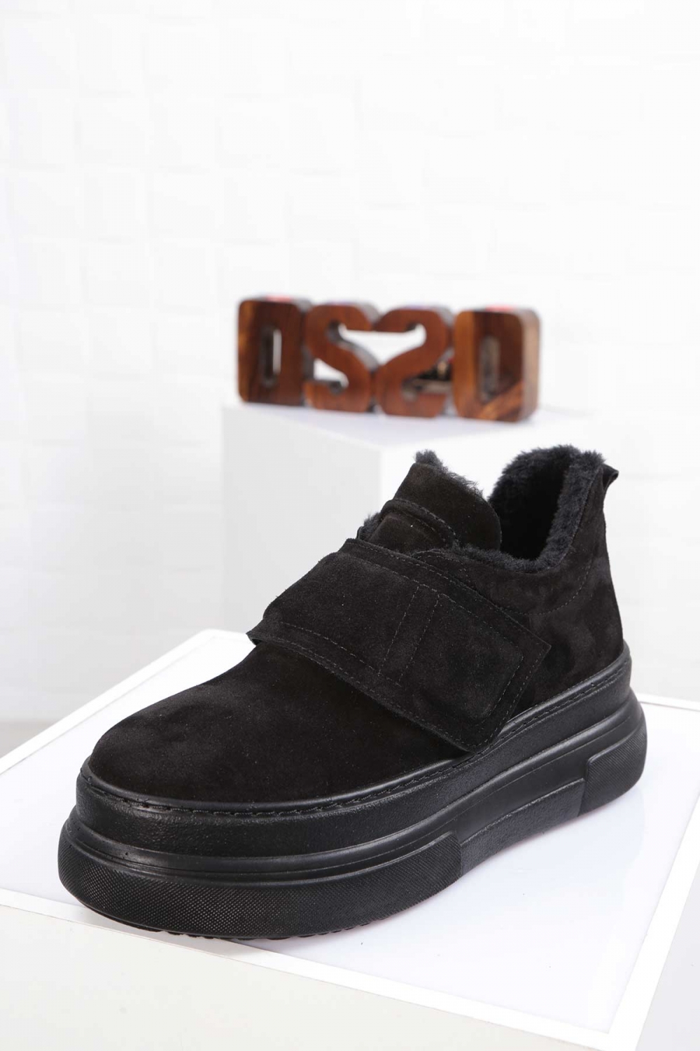 Hakiki Deri Siyah Süet Kadın Sneaker Ayakkabı 212225107