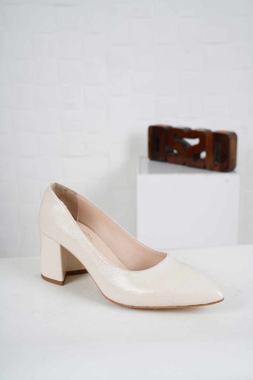 Bej Sulu Rugan Kadın Topuklu Ayakkabı 221127122