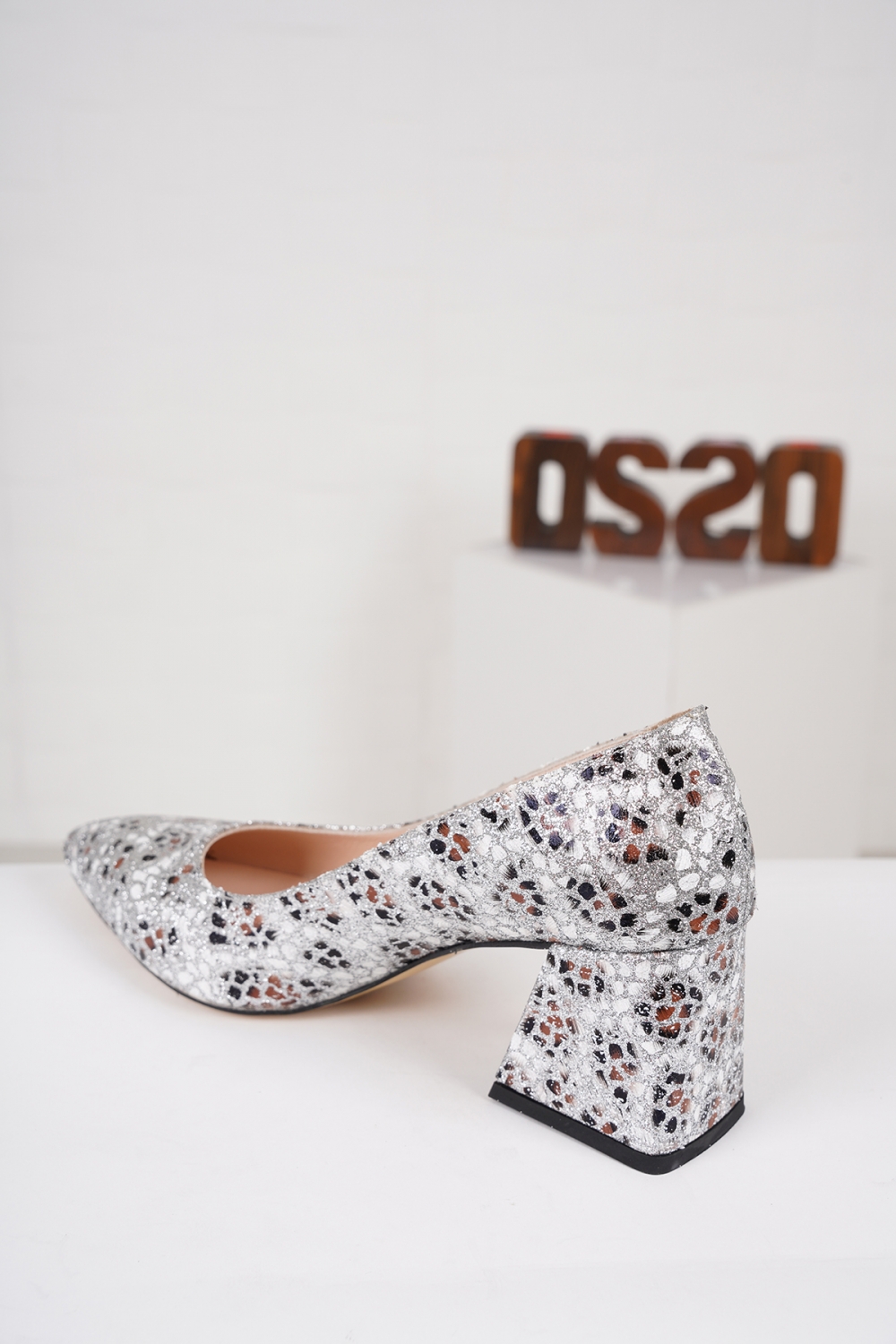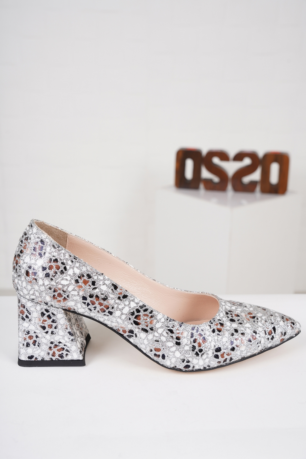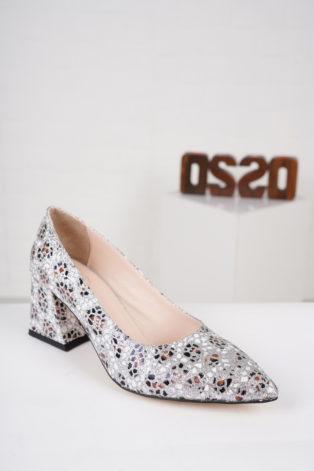 Lame Simli Leopar Kadın Topuklu Ayakkabı 221127122