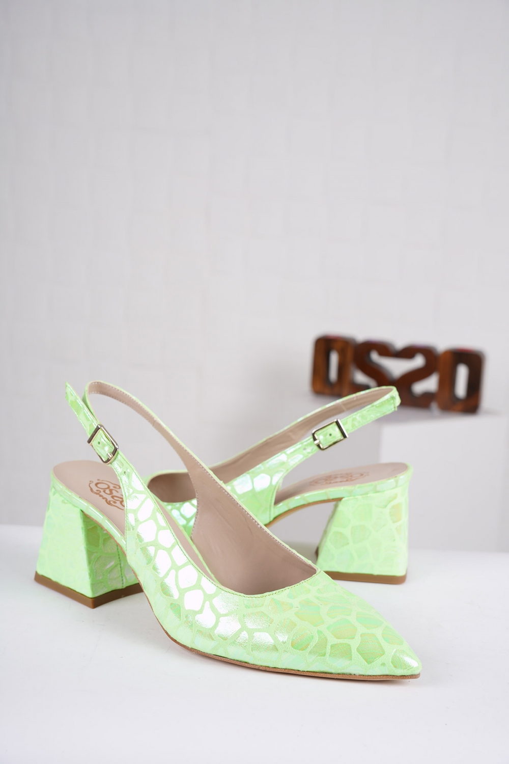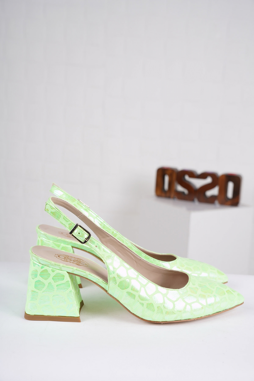 Yeşil Kroko Rugan Kadın Topuklu Sandalet 221127528